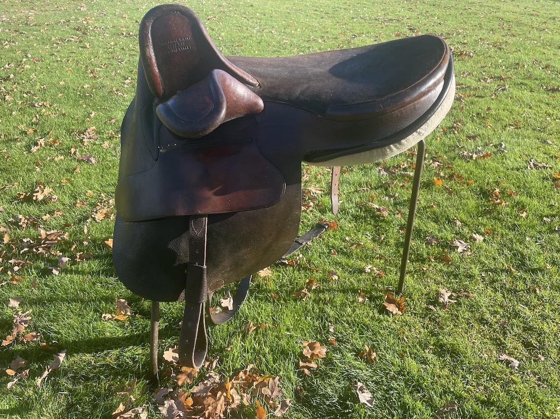 Champion & Wilton 17″ Seat width 13″ Front of fixed head to cantle 23″ Leather, no iron
