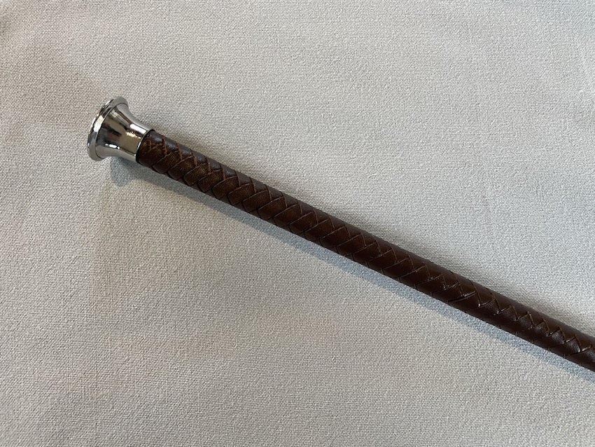 *TOP SELLER!* Stunning chrome top whip with a brown leather plaited shaft and rat tail end