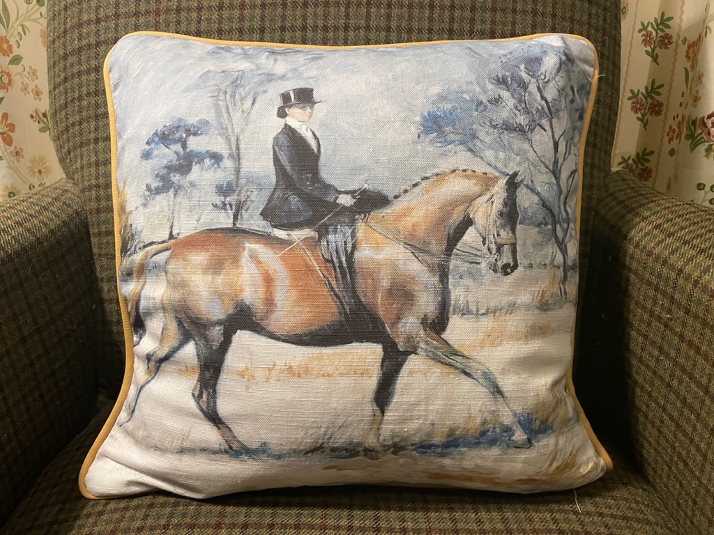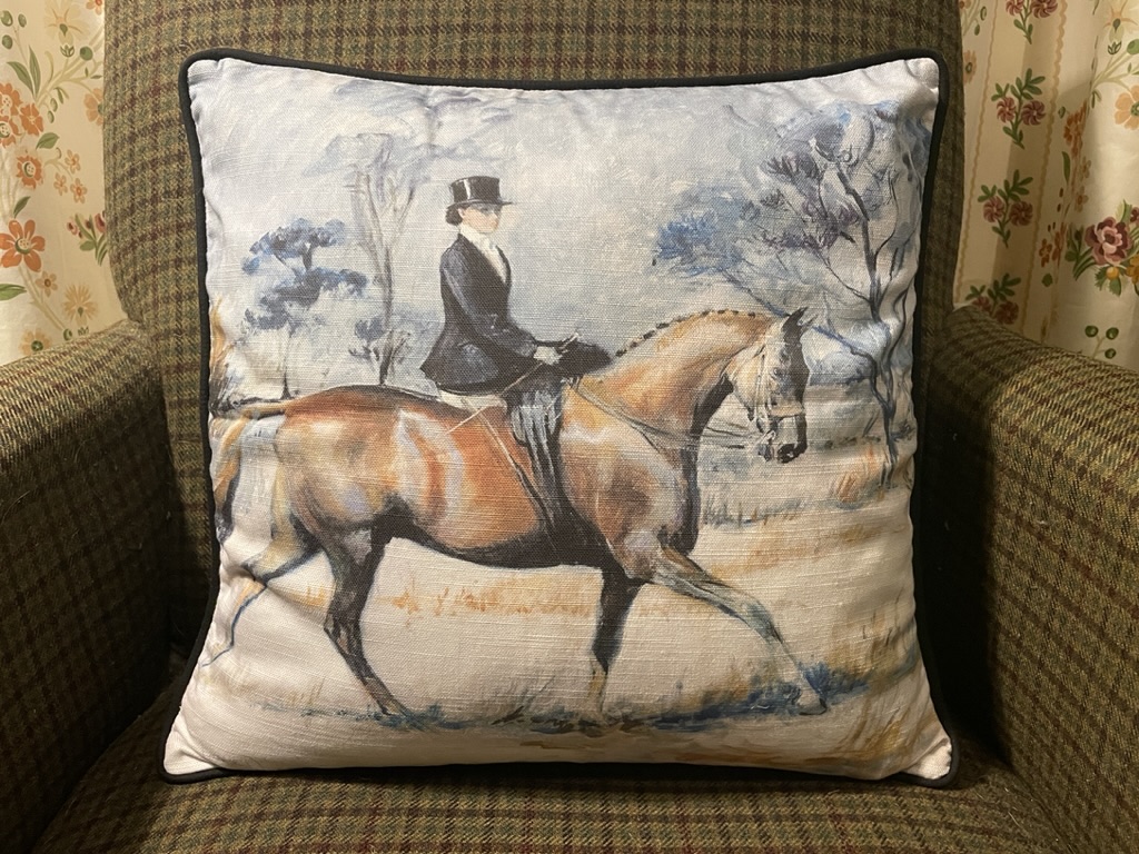 Stunning cushion with Harmony design – lady riding in her habit on her horse
