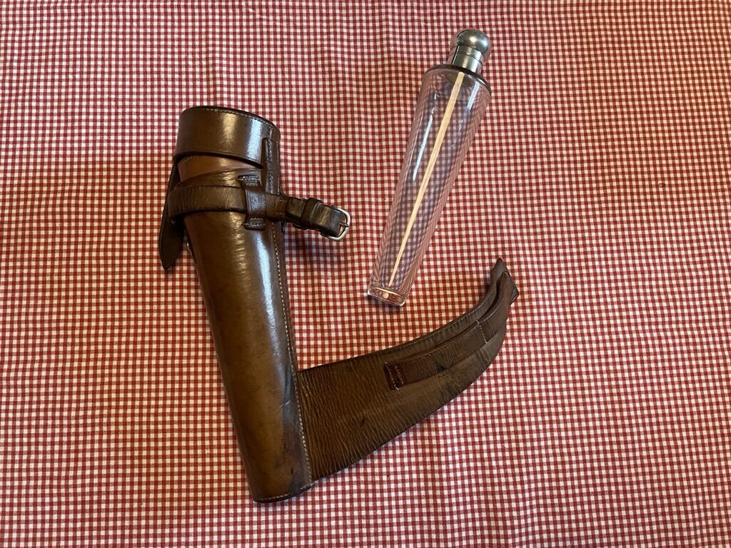 Stunning leather flask with glass bottle