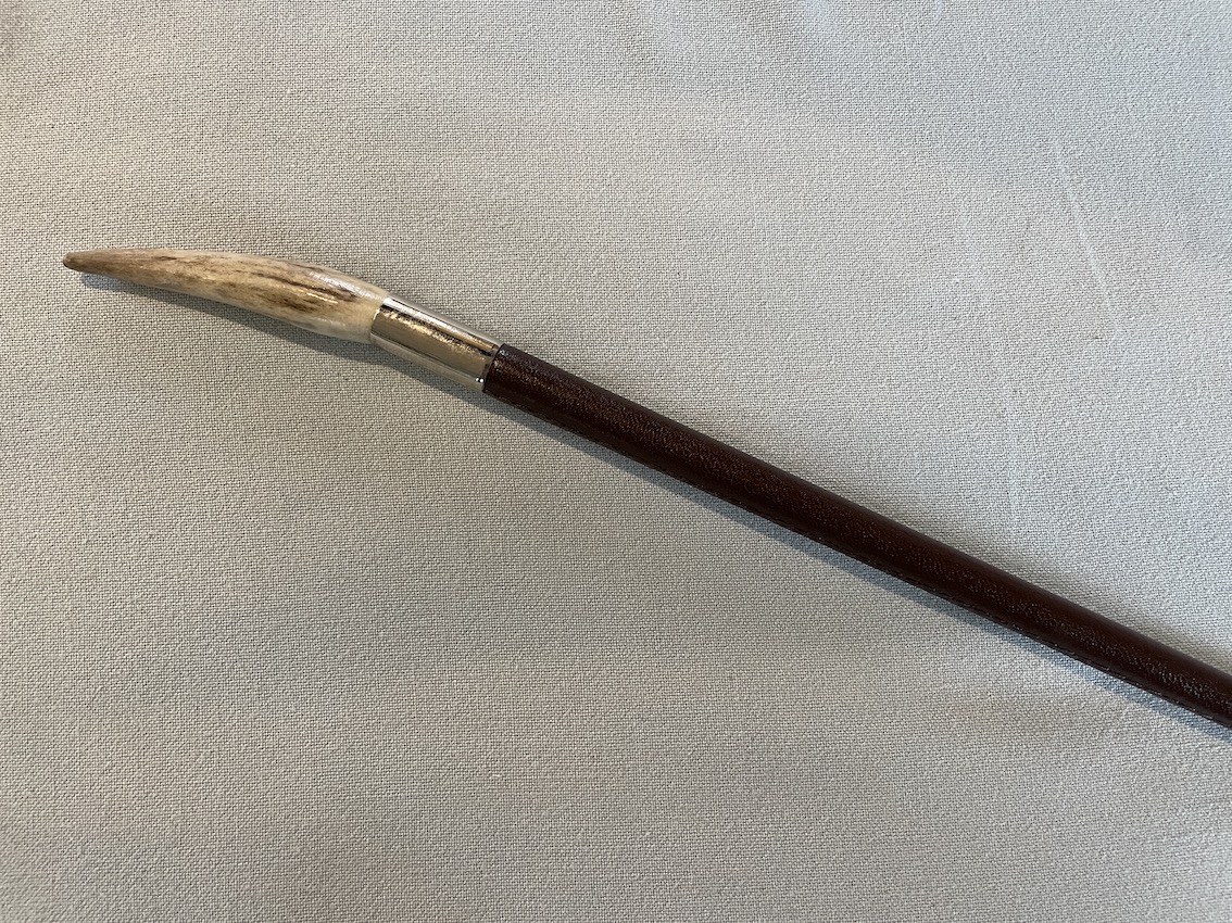 Stunning stag horn tip whip with a brown leather wrapped shaft and rat tail end